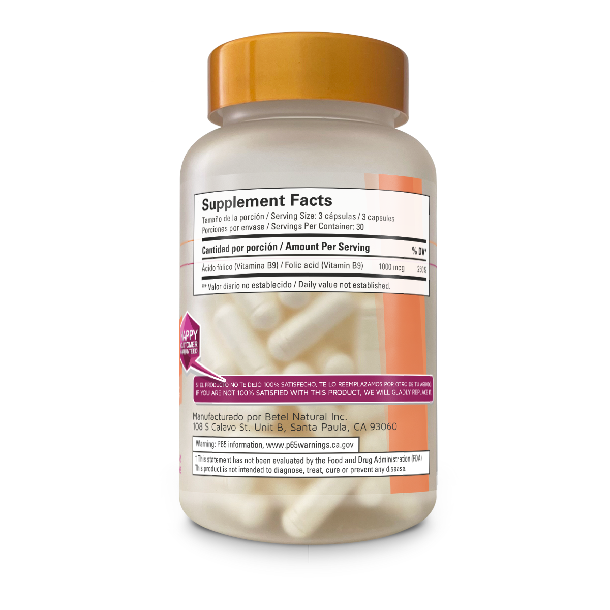 Suplemento Alimenticio: El Acido Fólico cápsulas de Betel Natural es una opción excelente para mejorar tu salud celular, cognitiva y reproductiva. 🌱