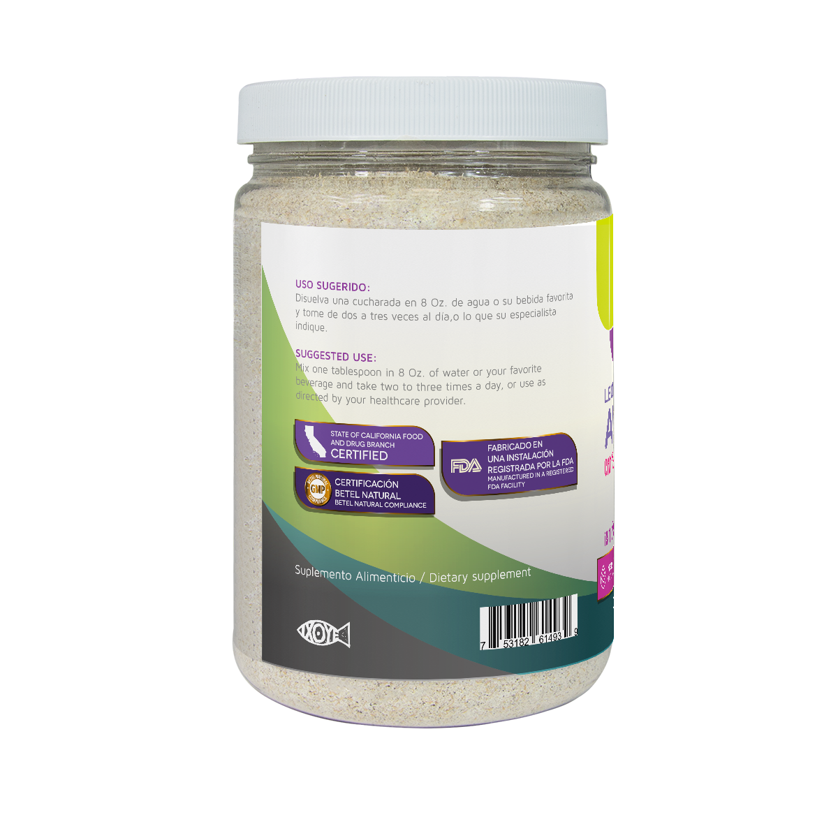 Disuelva una cucharada en 8 oz. de agua o su bebida favorita y tome de dos a tres veces al día, o lo que su especialista indique.