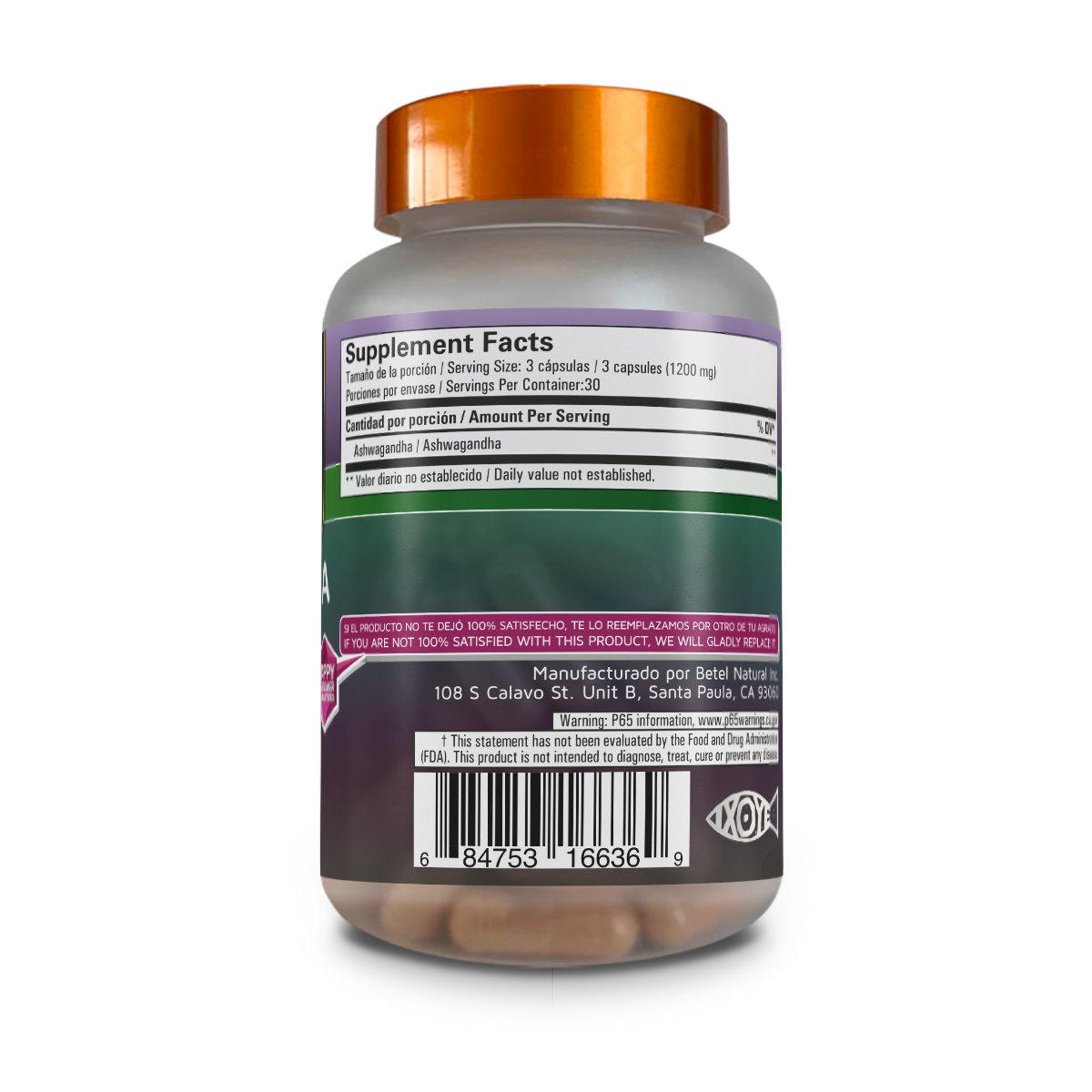 Ashwagandha Cápsulas de Betel Natural es un suplemento natural que aprovecha las propiedades de la ashwagandha para promover la tranquilidad, reducir el estrés y mejorar el bienestar general. Su fórmula contiene compuestos naturales que ofrecen beneficios tanto para la mente como para el cuerpo. 💊✨