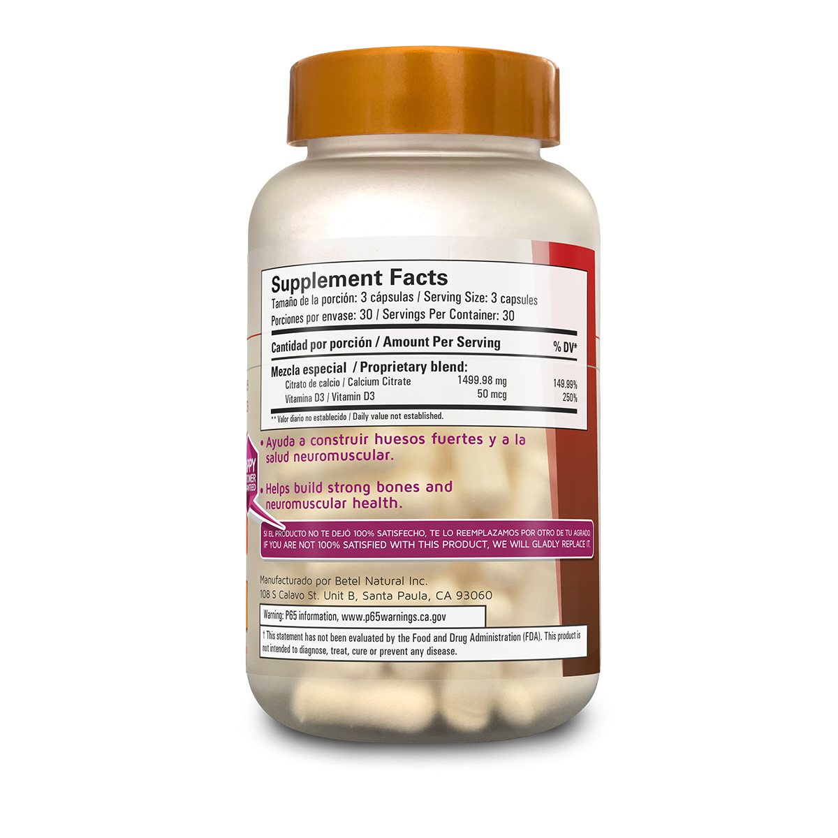 Con Calcio Reforzado con Vitamina D3 Cápsulas de Betel Natural, puedes cuidar de tu salud ósea y muscular para mantener un estilo de vida activo y saludable. ¡Tu bienestar empieza desde adentro! 🌈💚