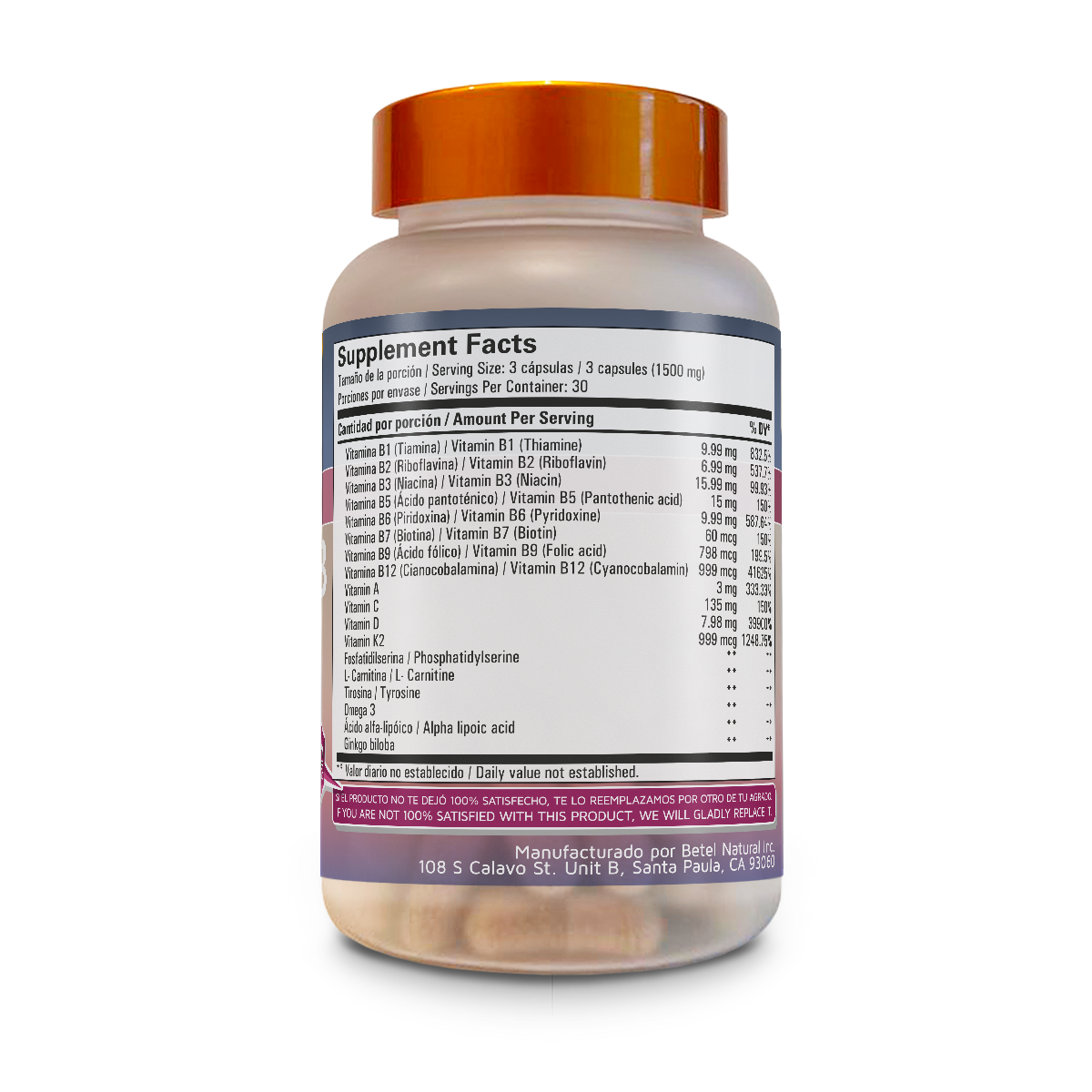 Mejora la concentración y memoria: Cerebro B Cápsulas de Betel Natural está formulado para optimizar la concentración, la memoria y la retención de información, siendo ideal para aquellos que buscan mejorar su rendimiento cognitivo y mantener la mente alerta. Perfecto para estudiantes, profesionales o cualquier persona que desee un impulso mental. 📚✨